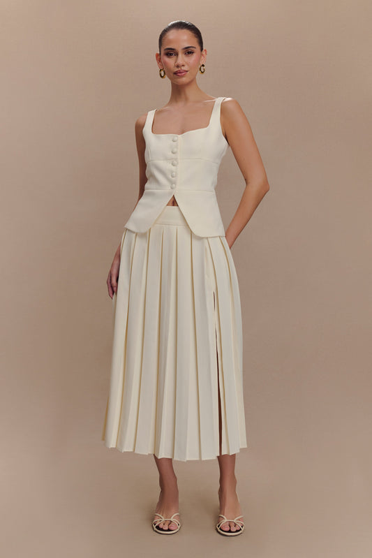 Elevate your wardrobe with the SUNNY Suiting Peplum Top, a perfect blend of classic style and contemporary elegance. Featuring a sophisticated square neckline and a button-front closure, this top is designed with a fitted bodice that accentuates your shape. The peplum hem adds a touch of feminine flair, creating an effortlessly chic look. Fully lined for comfort and structure, it pairs beautifully with the Sunny Pleated Midi Skirt to create a polished, coordinated outfit.