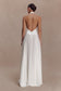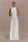 The SUSAN Chiffon Halter Maxi Dress is designed to balance softness with structure. Featuring a gathered high neckline with a halter closure secured by a hook-and-loop fastening, it frames the shoulders while revealing an elegant open back. A contrasting satin triangle waist yoke defines the silhouette, flowing into a fit-and-flare drop-waist shape that moves effortlessly with the body. Crafted in lightweight chiffon through the bodice and skirt, this fully lined maxi-length dress is finished with an invisible centre-back zip for a seamless fit. Refined and expressive, this dress is made for moments that unfold with quiet confidence.
