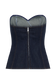 The SYLAS Strapless Buckle Denim Top combines modern structure with feminine charm. Featuring a princess neckline and statement belt detailing at the waist, this top highlights your silhouette with its fitted waist and peplum hem. The asymmetrical overlay panel adds an unexpected edge, creating a unique, fashion-forward look. Unlined for a lightweight feel, this top is perfect for elevating any wardrobe with its bold yet refined design.