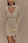 Knit Mini Dress With Scarf - Cream