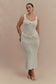 The TEAGAN Floral Hand Crochet Midi Dress is a stunning blend of artistry and femininity. Designed with a delicate sweetheart neckline, this bodycon silhouette is adorned with intricate hand-crocheted roses along the neckline and floral accents at the front and back waistline for a beautifully sculpted look. The pull-on design ensures effortless wear, while the midi length enhances its timeless elegance. Unlined for a lightweight, breathable feel, this dress is a statement piece perfect for sunlit escapes, romantic evenings, or special occasions that call for effortless charm.