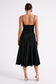 The TOMIKA is an A-line midi skirt with a mid-rise waistline and pleated bias-cut hem. The custom satin fabrication highlights the folds of the hem and the design seam lines. A side zipper allows for easy wash-and-wear. Loose and flowy, this dress is casually elegant and exudes classic feminine energy. The top panel is a smooth, fitted affair that complements the flowing bias-cut hem perfectly.