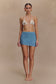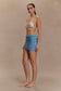 The WAVERLEY Metallic Knit Mini Skirt brings playful polish to warm-weather dressing. Crafted in a shimmering metallic crochet knit, this mini features a mid-rise waistline with an asymmetrical cut that contours the waist. Gathered detailing at the hip adds texture and shape, while the mini length keeps the look fresh and effortless.