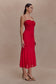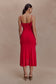 The WILLA Gathered Mesh Midi Dress is designed to contour with delicate precision. Featuring a sweetheart neckline, it frames the décolletage with a romantic touch, while gathered detailing through the bodice enhances shape and texture. Adjustable back shoulder ties allow for a personalised fit, complemented by a clean back zip closure. Partially lined for comfort and coverage, this midi-length silhouette balances sheer softness with a fitted finish — elegant, modern, and effortlessly refined.