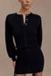 The XADEN Wool Mix Knit Mini Dress blends cosy texture with a refined, contemporary silhouette. Designed with a semi-functional button-front closure, this dress features a flat-knit blouson bodice and sleeves that create soft volume through the upper body. The fitted ribbed skirt and sleeve cuffs add contrast and structure, shaping the figure with subtle definition. Crafted in a warm wool-mix yarn and left unlined for natural comfort, this mini-length design brings effortless polish to cool–weather dressing.