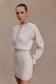 The XADEN Wool Mix Knit Mini Dress blends cosy texture with a refined, contemporary silhouette. Designed with a semi-functional button-front closure, this dress features a flat-knit blouson bodice and sleeves that create soft volume through the upper body. The fitted ribbed skirt and sleeve cuffs add contrast and structure, shaping the figure with subtle definition. Crafted in a warm wool-mix yarn and left unlined for natural comfort, this mini-length design brings effortless polish to cool–weather dressing.