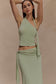 The XANTHIA Knit Halter Top brings modern detailing to a sleek, minimalist silhouette. Designed with an asymmetrical halter neckline, it features side hardware and a draped sash for a touch of movement. The open back adds an alluring finish, while the unlined knit fabrication keeps this top lightweight and versatile—perfect for pairing with tailored pants, a statement skirt, or its coordinating bottom for a complete set.
