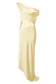 YVETTE is a Slip Maxi Dress with a low, open back, a slight cowl detail for the front neckline, and a loose, flowing hem. The front neckline dips into a slanted arrangement, with one shoulder strap up for a sleeveless look and the other down in an off-shoulder style. The asymmetrical hem is much the same, with one part gathered above the ankle and the other hitting the ground. Two thin fabric straps run across the back, adding extra detail to the low, back neckline.