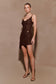 Diamante Cowl Mini Dress - Chocolate
