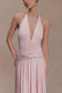 The ZELDA Asymmetric Slinky Midi Dress is designed to contour the body with modern elegance. Featuring a plunging V halter neckline with an adjustable neck tie, it frames the décolletage with confident allure. A front knot detail and gathered waist sculpt the silhouette, enhancing shape while maintaining fluid movement. Finished with an asymmetric hankie-style skirt, this fitted bodycon design falls to a midi length with effortless drape — refined, directional, and made for elevated evenings.